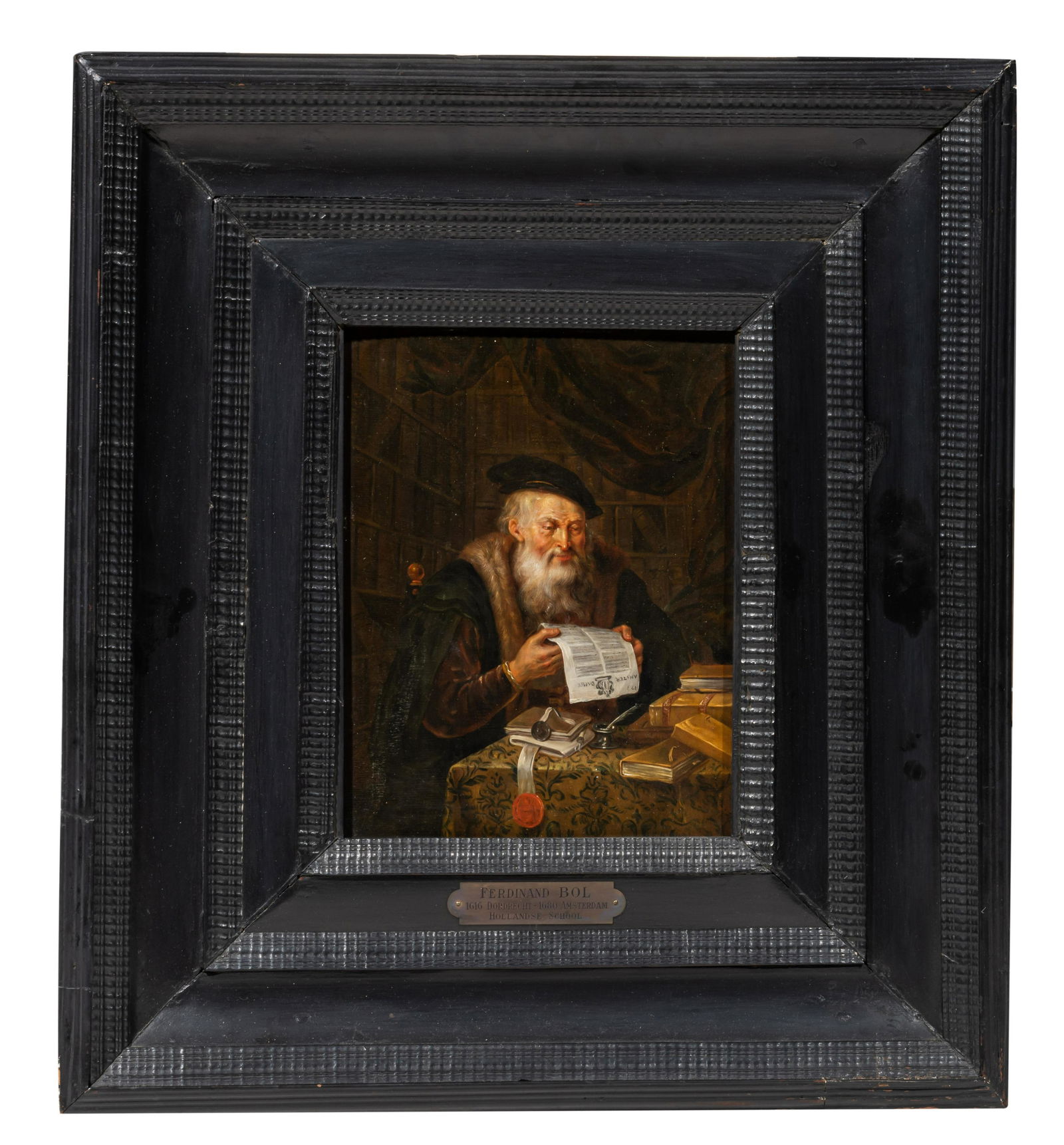 SoldFerdinand Bol, portrait of a young girl, oilFollower of Ferdinand Bol (Dutch, 1616-1680)Portrait of a young girloil on oak panelreverse inscribed Ferdinand Bol, with old printed gallery label to reverse13 x 11in (33 x 28cm) ProSee Sold Price