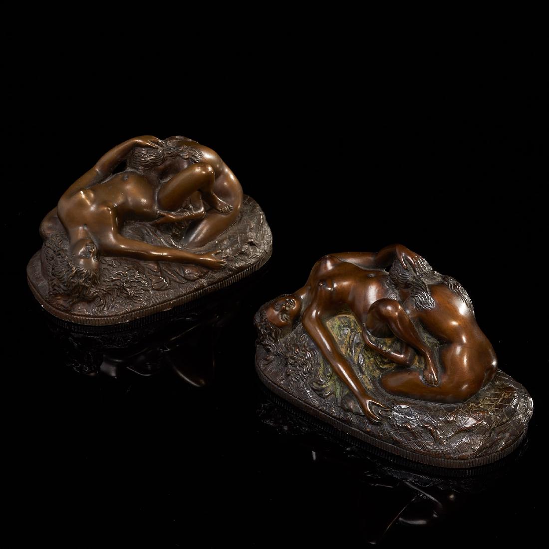 Antique French Bronze Figural Electrified Torchiere Lamps - PairEmmanuel Fremiet Bronze on Marble - Pan & ChildMar 15, 2026PAUL LUDWIG KOWALCZEWSKI (POLISH/GERMAN 1865-1910), A PAIR OF BACCHIC REVELERS, 19TH/20TH CENTURY,Feb 21, 2026After Guillaume Coustgou Pair French Bronze Sculptures of Marly HorsesMar 15, 2026Antique Pair of Bronze Classical FiguresFeb 18, 2026Pair of Old Large Bronze Figural Tall PlantersFeb 18, 2026A war of Han bronze gold and silver carvingsFeb 28, 2026" The Harvesting Couple" Le Retour des Champs by Etienne Henri Dumage (1830-1888)Feb 19, 2026A PAIR OF NEOCLASSICAL STYLE BRONZE STATUETTES, ENGLISH OR FRENCH, 19TH CENTURY,Feb 21, 2026PAIR FRENCH ART DECO "INSOUCIANCE" BRONZED FIGURAL BOOKENDS Signed "Janle" for Jean Lemoine Max2 days LeftThree Set of Figure Art Deco Bookends (3)Mar 07, 2026Following the models of Jules Michel Clodion (France 1738-1814) - Family of Bacchantes, 20th century2 days LeftInspired Bronze "The Kiss Nude" Statue Rodin Sculpture - 6" x 4"Jul 22, 2025Clodion (Claude Michel Clodion) Signed Bronze "Satyr and Bacchante," Good Period Casting5 days LeftA PAIR OF ROCOCO STYLE BRONZE ORMOLU CANDLESTICKS, FRENCH, 19TH CENTURY,Feb 21, 202619th C. Bronze Statue "Paul & Virginia", Signed J. Escoula with Foundry Stamp3 days Left