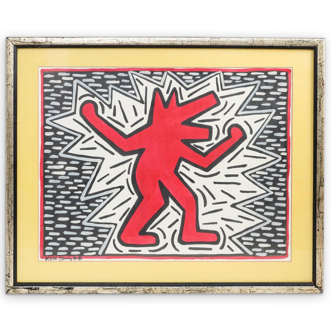 After Keith Haring "Dancing Dog" Drawing On Paper