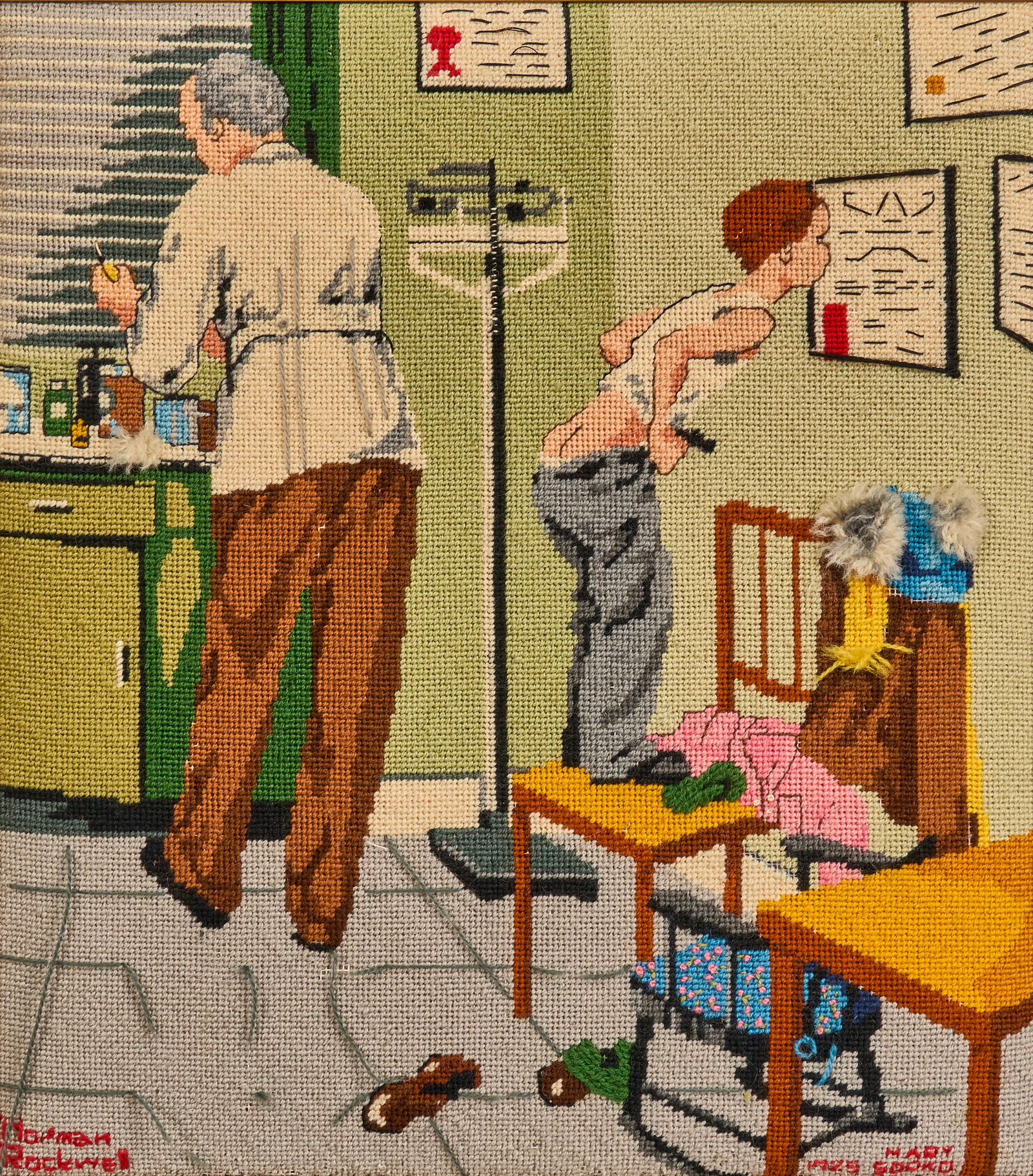 After Norman Rockwell, Framed Needlepoint
