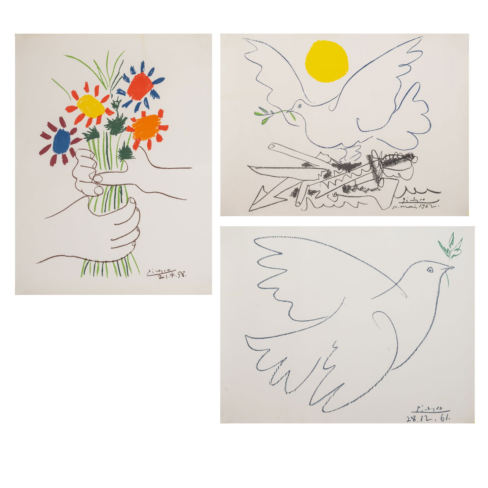 After Pablo Picasso, three lithographs on Arches