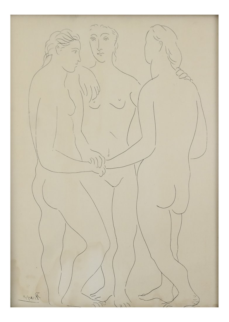 SoldPablo Picasso (1881-1973) Etching The Three GracesPablo Picasso (1881-1973) framed etching, titled "The Three Graces". A limited posthumous edition of 1500. Edition 481 / 1500. Sight measurement 7.75" x 5-5/8". Well framed and matted under plexiglassSee Sold Price