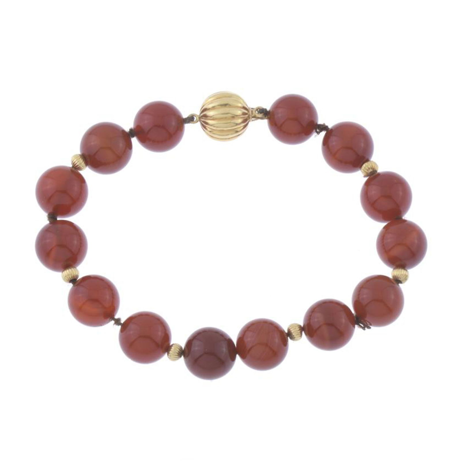 AGATE BEADS AND GOLD BRACELET.