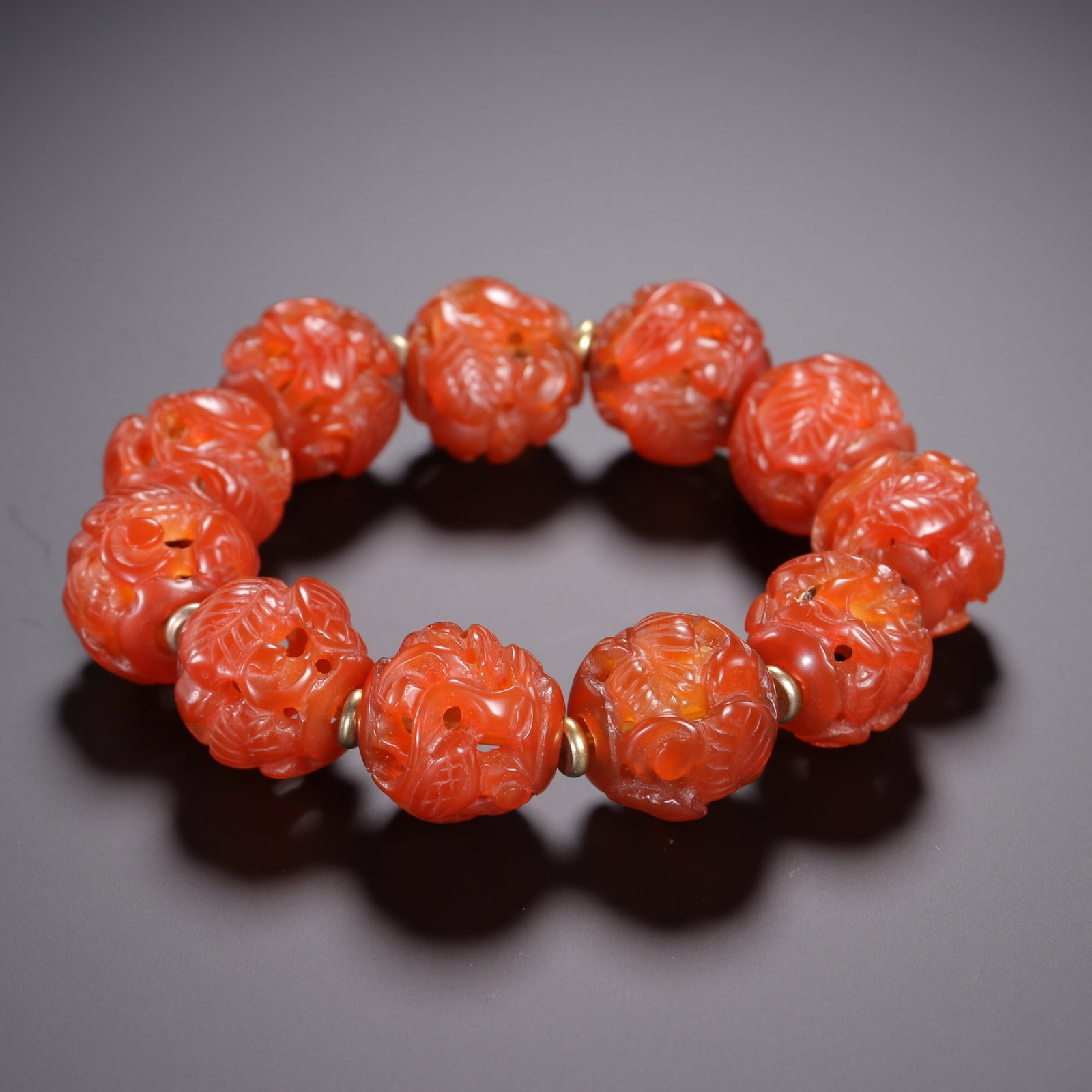 Agate carved flower crane patterned bracelet