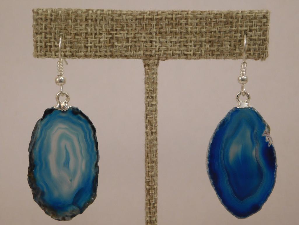 AGATE SLICE EARRINGS ROCK STONE LAPIDARAY SPECIMEN