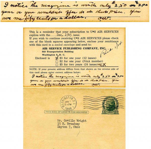 Air Services Signed Orville Wright Autograph Inscribed