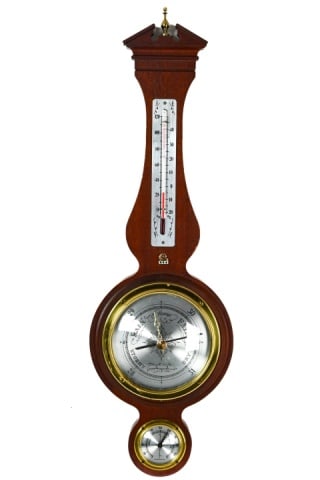 A LARGE OAK CASED WALL BAROMETER, LATE 19TH CENTURY