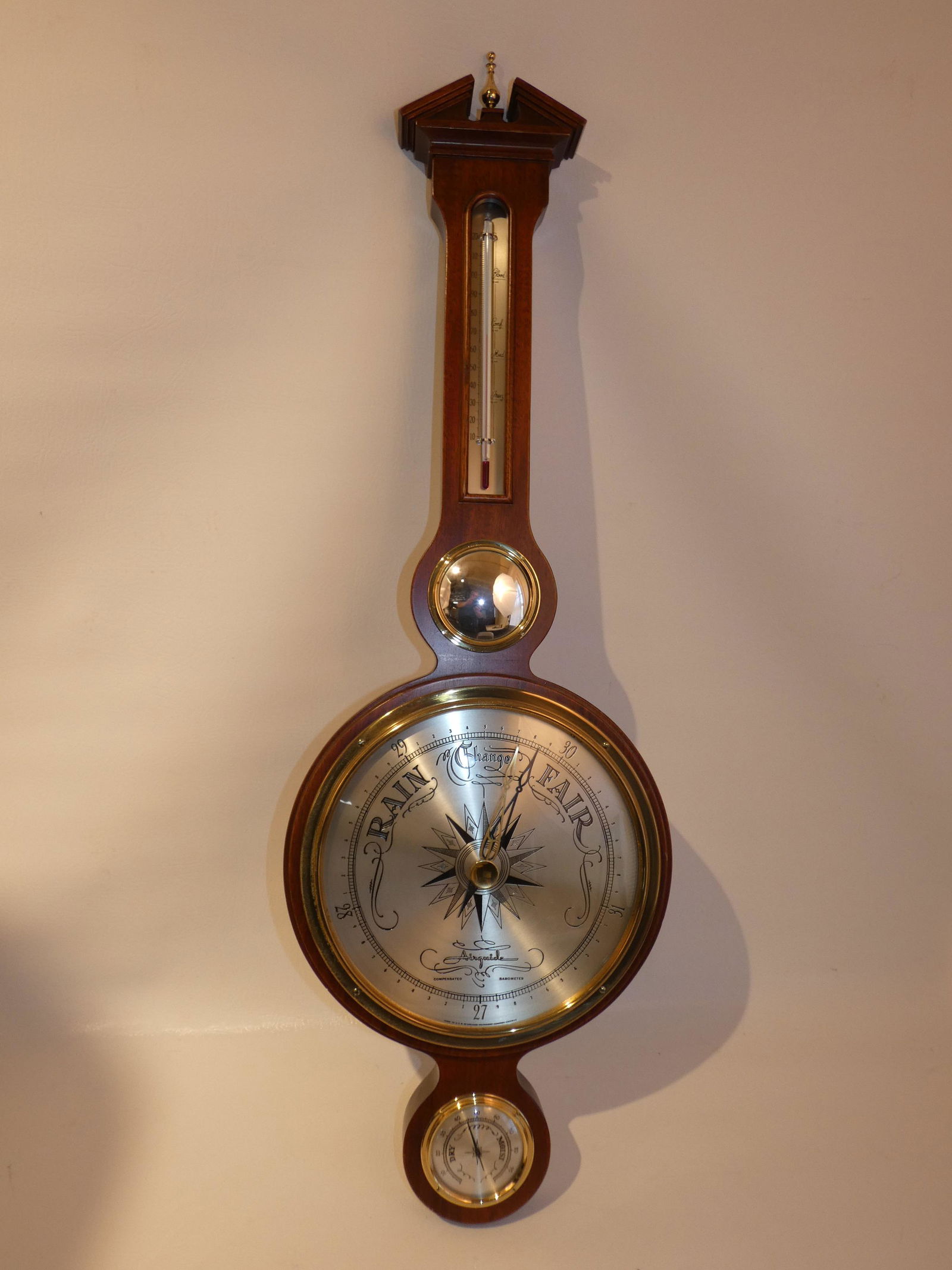 Pair of Barometers and Thermometers3 days LeftAn English Mahogany Longcase ClockRegency English Brass Inlaid Aneroid BarometerAntique French Mahogany & Brass Inlaid Mantel Clock by Marti c.1900Turned Mahagony Wood and Silver Plated Bronze Sundial Compass1 day LeftVintage solid mahogany weather station, thermometer, barometer, hydrometerMar 08, 2026Vintage Airguide Banjo Style Wall Barometer3 days LeftAntique English Barometer, Circa 1840Feb 23, 2026English Carved Oak Aneroid BarometerMar 07, 2026Charles Aiano Mahogany Stick Barometer, 18th C2 days LeftVictorian Walnut Banjo Aneroid Barometer Thermometer Weather StationMar 28, 2026George III Mahogany Stick Barometer, Ortelly & Co.Mar 13, 2026SCHATZ SHIPS CLOCK & BAROMETER C. 1970S3 days LeftElegant Barometer and Thermometer with Copper Bas-Relief of a WomanAmerican Mahogany and Eglomisé Banjo Clock4 days LeftPHILIP HARRIS & CO. TANGENT GALVANOMETER Birmingham, England, Early 20th Century Height 14.5". BaseMar 12, 2026
