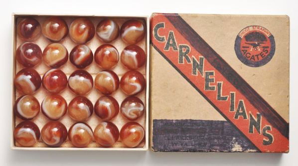 Akro Agate Carnelian Marble Box Set.