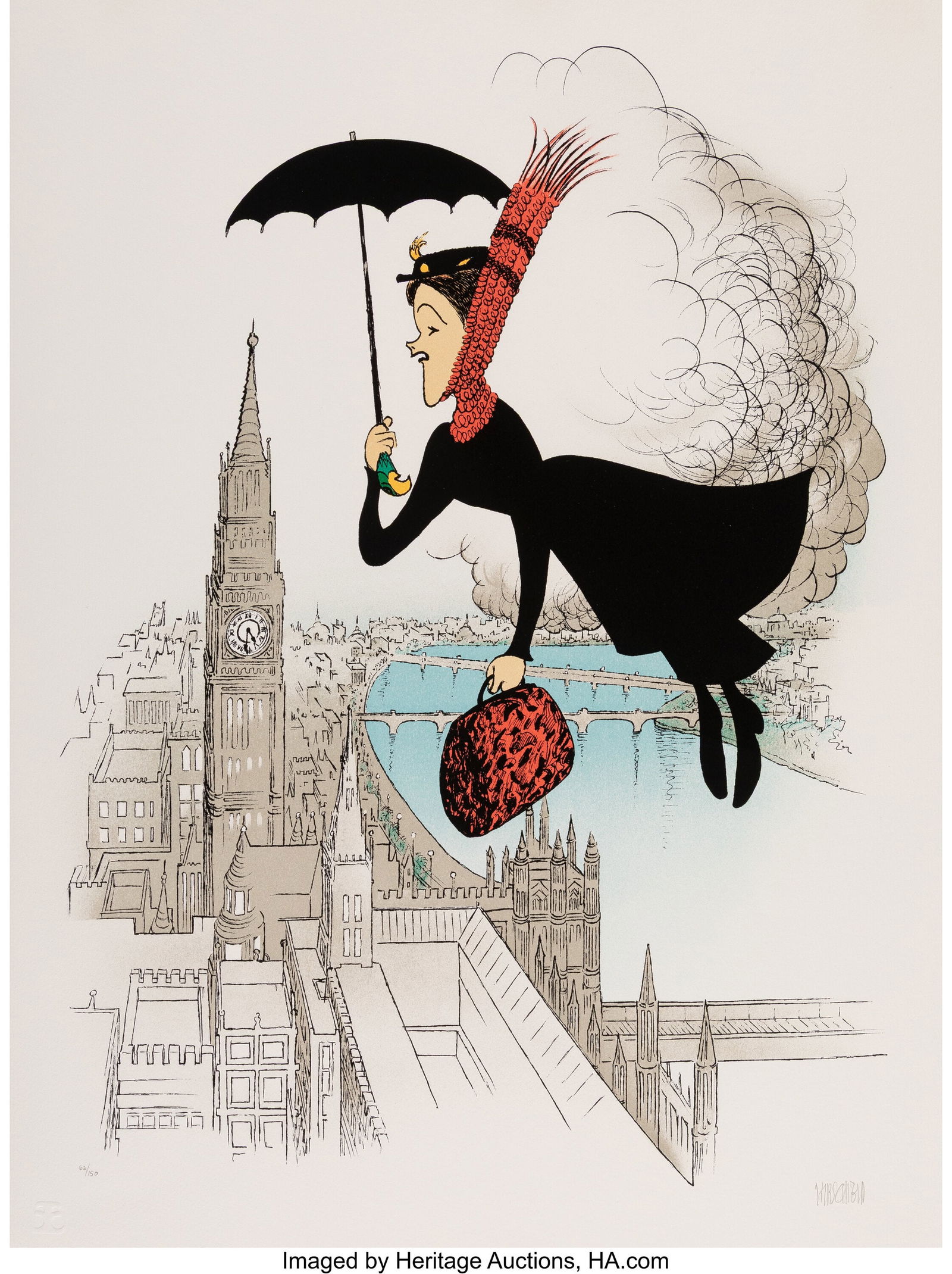 SoldAl Hirschfeld. "Mary Tyler Moore and Dick Vandyke," lithograph(American, 1903-2003) Lithograph, ed. 100/200, signed "Hirschfeld" in the print lr, sight size: 17 1/2 x 13 1/2 in., framed size: 22 1/4 x 18 1/4 in. Provenance: From a private collection, Timonium, MSee Sold Price