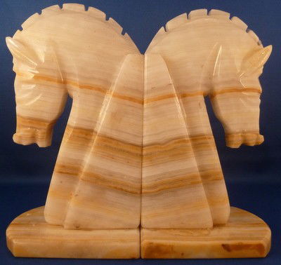 ALABASTER CHESS HORSE BOOKENDS