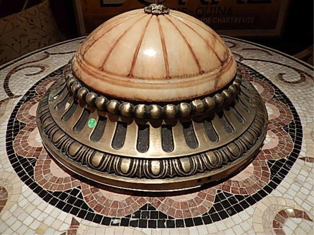ALABASTER DOME CEILING LIGHT, BRONZE BASE, APPROX 20"