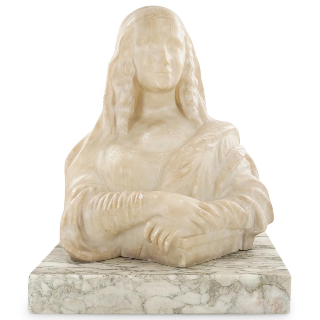 Alabaster Mona Lisa Bust On Marble Base
