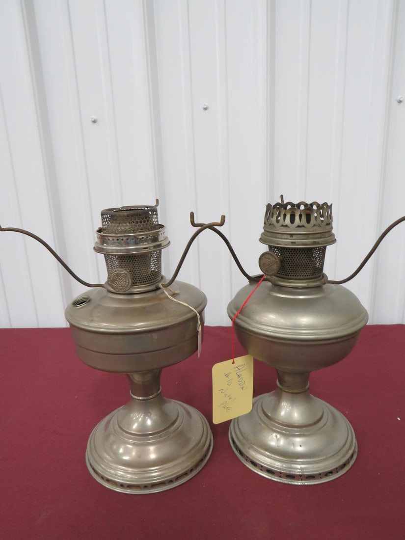 TWO SILVER PLATED OIL LAMPS Late 19th/Early 20th Century Heights 9" and 13".Eldred's4.8(484)$70(1 bid)3 days Left