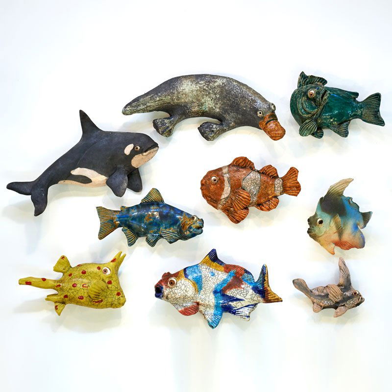 MCM Ceramic Angel Fish with Bubbles 8 Piece Wall Sculpture Set by CeramicraftHARVEYS ON BEVERLY$3005 days Left