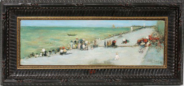 ALBERT AUBLET OIL BEACH SCENE WITH FIGURES