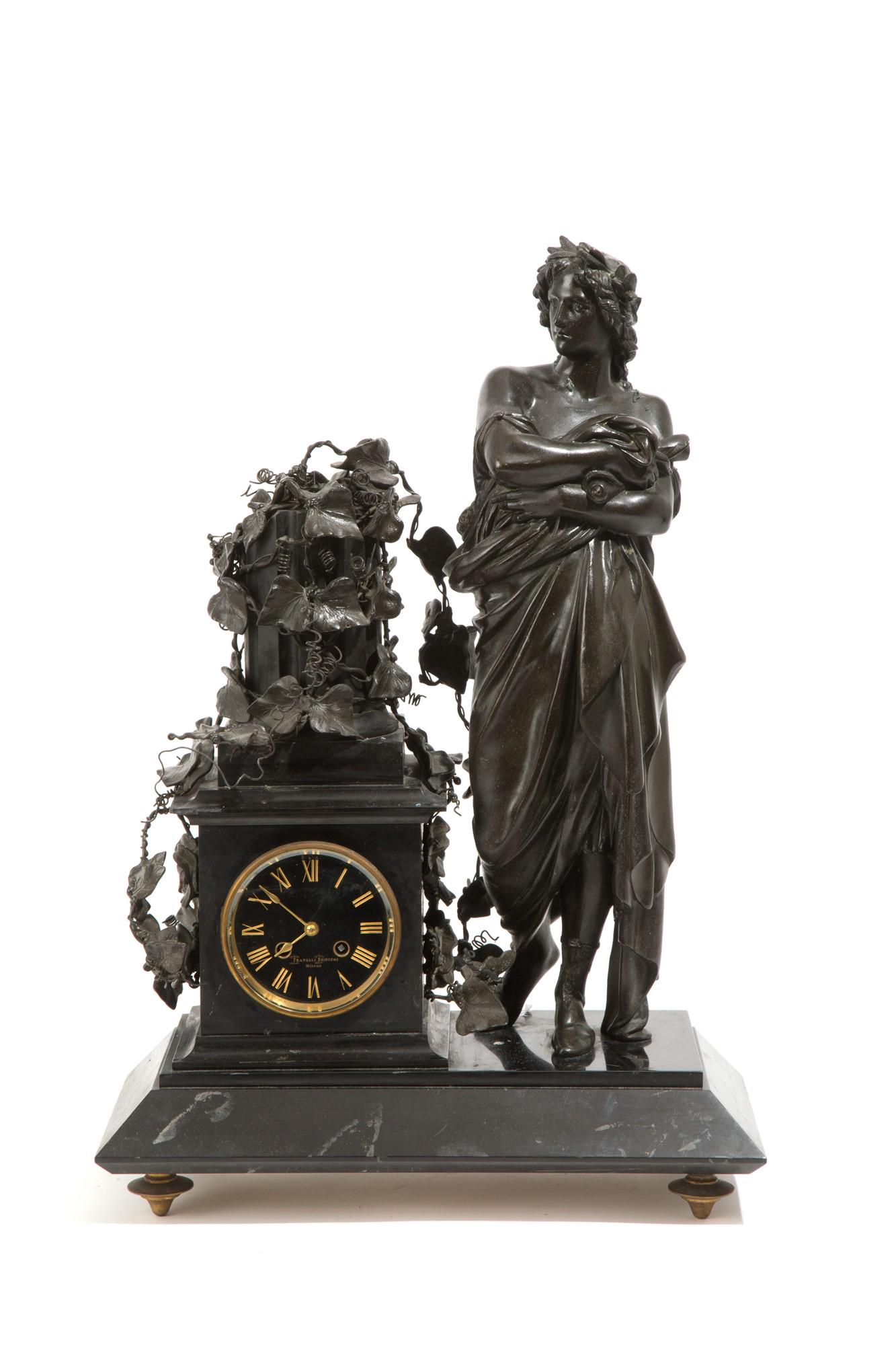 (3) EMPIRE STYLE BRONZE & MARBLE MANTEL CLOCK & CANDELABRA GARNITURE SET8 hrs Left(3) FRENCH LOUIS XVI STYLE ORMOLU-MOUNTED MARBLE CLOCK & CANDELABRA GARNITURE SET8 hrs LeftBlack Starr & Frost - Empire Mantle Clock4 days LeftJunghans Diana Clock4 days LeftMid-19th Century French Japy Frères Black Marble Clock Garniture SetNapoleon III Bronze end Figured Black Marble Time and Strike Mantel Clock, circa 1870, H.- 21 1/45 days Left(3)pc FRENCH MARBLE CLOCK SET3 days LeftGilbert Faux Black Marble Time and Strike Mantle Clock, c. 1900, H.- 11 3/4 in., W.- 17 1/2 in., D.-5 days LeftClassic Bronze Figural Clock with Maiden and Harp on Marble Base1 day LeftBRONZE AND MARBLE MANTLE CLOCK, HENRY COX, NYMar 07, 2026French Bronze and Marble Figural Mantel Clock After Auguste Moreau6 days LeftFrench Bisque and Marble Figural Mantel Clock, circa 1820-406 days LeftItalian Brass and Marble Figural Mantel Clock5 days LeftAntique French Dore Bronze & White Marble Figural ClockMar 01, 2026French Figural Mantel Clock, Bronze & Wood BaseMar 15, 2026French Ormolu-Mounted Cut-Brass Inlaid Tortoiseshell Boulle Ebony Clock5 days Left