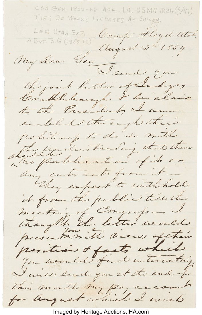 Abraham Lincoln Handwritten and Signed Notation, Wartime4 days LeftFINE EARLY WARTIME ROBERT E LEE AUTOGRAPH LETTERMar 01, 2026Edmund J. Davis – Texas Governor – Autographed Letter (ALS) Re. Warning Regarding Judge New England Civil War: Patriotic letter to brother, etcMar 02, 2026ROBERT E LEE AUTOGRAPH LETTER SIGNED.Mar 01, 2026ROBERT E LEE AUTOGRAPH LETTER SIGNED.Mar 01, 2026Ulysses S. Grant Autograph Letter Signed. Two pa5 days LeftHenry French NH 10th Infantry letters after deathMar 02, 2026ATTRACTIVE & RARE WARTIME ROBERT E LEE LETTER TOMar 01, 2026John C. Thorpe VA Courtney Light Artillery LetterMar 02, 2026John Brown related letters, Thomas Higginson, etc.Mar 02, 2026Abraham Lincoln visits New Jersey Regiment, etc.Mar 02, 2026Declaration Signer William Floyd Autograph Lette5 days LeftSally McQuinton Letters/covers Preble County, OhioMar 02, 2026Pvt. Henry Boteler Louisville, KY Rockbridge ArtilleryMar 02, 2026Lincoln's Postmaster William Dennison signed letterMar 02, 2026