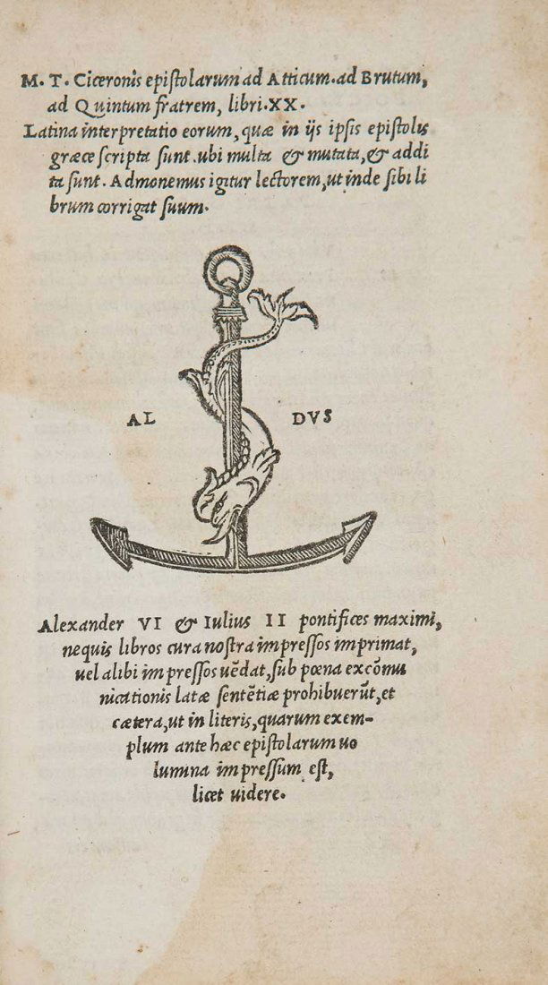 SoldAldina - Cicerone, Marco TullioLe Epistole famigliari Venezia, eredi di Aldo, 1545. In 8°. Ancora aldina al frontespizio e in fine, spazi per iniziali con letterine guida,piccole macchie di umidità e sporadiche fioriture, lievi dSee Sold Price