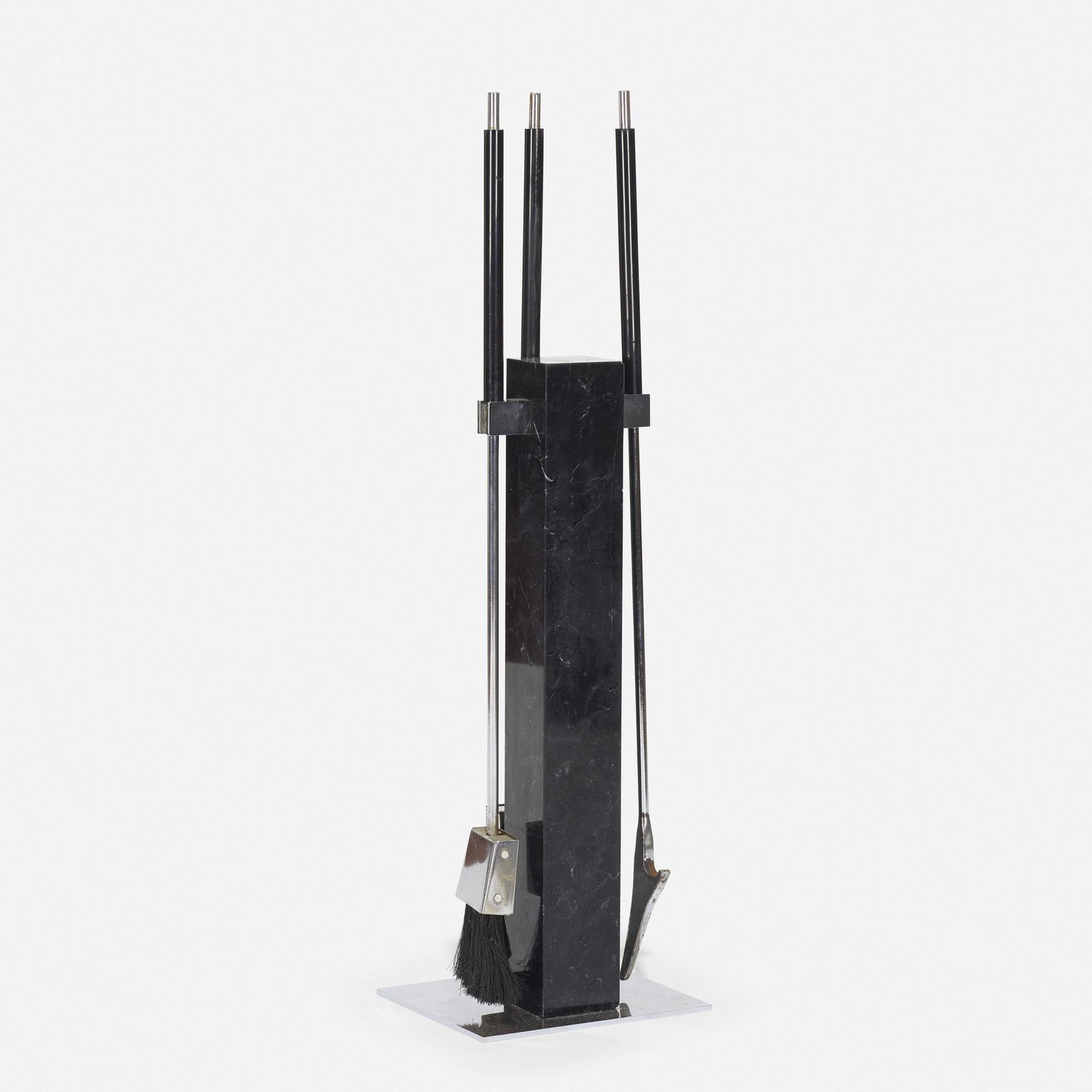 SoldAlessandro Albrizzi (1934-1994) fire tools and andironsAlessandro Albrizzi (1934-1994), fire tools and andirons, Italy, 1960s, chromed steel, Lucite, tools: 10"w x 8.75"d x 35"h, andirons: 7.25"w x 19.5"d x 17.25"hSee Sold Price