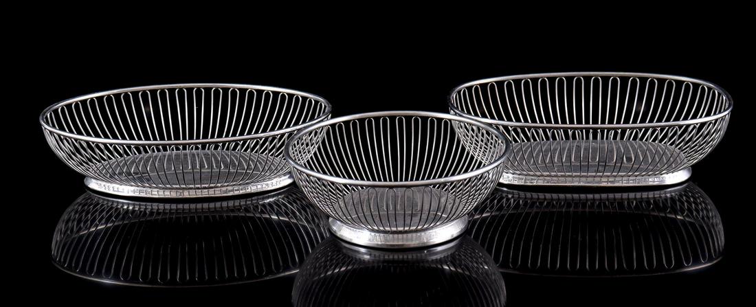 Lot of Silver Items.Mar 10, 2026Lot of sterling silver tableware. Various handled baskets and dishes, all except for one without3 days LeftEight Assorted Sterling Silver BasketsMar 13, 2026Battuto, Italy, modernist silver bowl, Italian design. Handmade.Set of Three Godinger Silver Art Co. BasketsMar 05, 2026Three 830 Silver Shaped BowlsMar 11, 2026Continental Silver Oval TrayMar 11, 2026English 1900 Repose Sterling Silver Basket 11.65 x 8.55 x 3.34 days LeftEnglish 1900 Repose Sterling Silver Basket 11.65 x 8.55 x 3.33 days LeftEnglish 1900 Repose Sterling Silver Basket 11.65 x 8.55 x 3.32 days LeftMid-Century Modern .900 Silver Basket 10 x 6 x 9.75 27.5 ozt2 days LeftA Silverplated Basket - 19th / 20th CenturyMar 06, 2026Tiffany & Co. Sterling Silver Basket 1940s Decorative Piece3 days LeftPair of Modern Sterling Silver Toast RacksMar 11, 2026830 Silver Oval TrayMar 11, 2026Bellini Silver Plated Cup Set with TrayMar 05, 2026