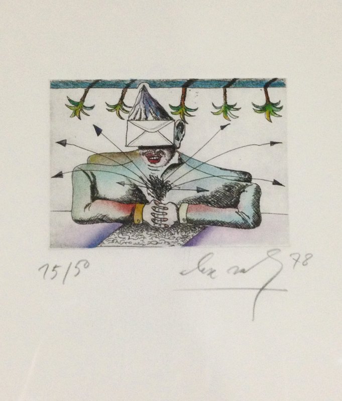 Alex Sadkowsky, Letter Mountain, Hand-Colored Etching