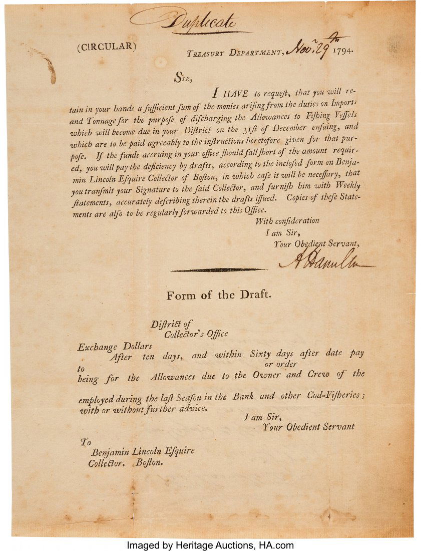 Late 18th Century Pennsylvania Colonial Land CaseMar 15, 2026Alexander Hamilton Letter Signed. One page, 8 x3 days LeftAlexander Hamilton Letter Signed. One page, 8 x3 days Left1794 Connecticut Recorded Land DeedMar 15, 2026Alexander Hamilton Letter Signed. Two pages, 7 13 days LeftWilliam Thornton 1817 Washington DC Capital Architect Signed Manuscript Document Richard Bland LeeMar 29, 20261773 Colonial Court Indictment The King vs. McGile, Signed by Attorney General Andrew AllenMar 15, 20261779 Revolutionary War Pennsylvania Court DocumentMar 15, 20261767 Philadelphia Land Bond Mifflin/Wallis SignatureMar 15, 20261861 U.S. Treasury Department Letter – Civil War Banking Agent AppointmentMar 15, 20261780 Revolutionary War Army DocumentMar 15, 2026Alexander Hamilton Letter Signed. Two pages, 7 33 days LeftGeorge Washington Signed Medical Discharge, Moses Downing2 days Left1797 Pennsylvania Tipping House DocumentMar 15, 20261763 Signed Legal Opinion Bank of England Probate DocumentMar 15, 2026Ulysses S. Grant "Affix-the-Seal" Document Signe3 days Left