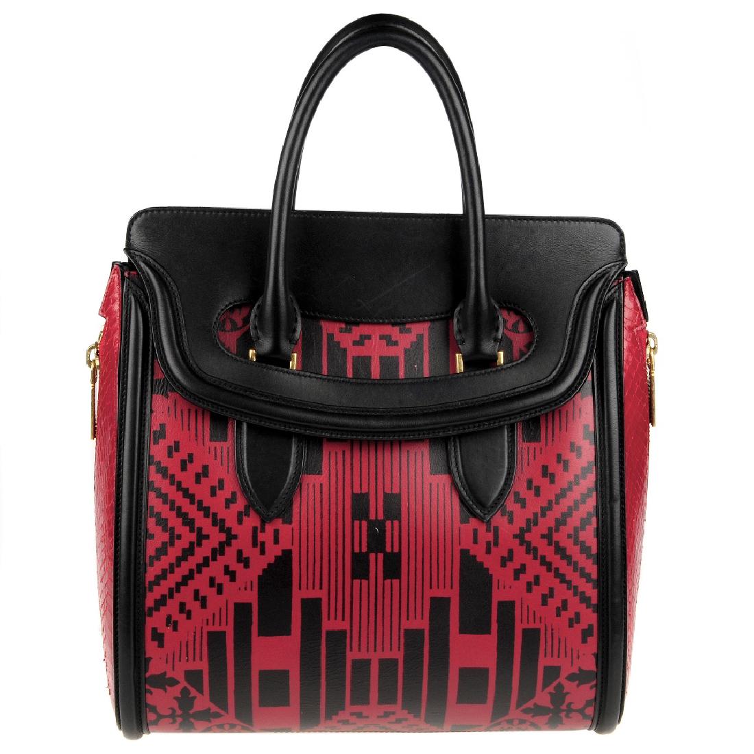 SoldALEXANDER MCQUEEN PATENT HONEYCOMB 'HEROINE' BAGAlexander McQueen (British, founded 1922). Black patent leather "Heroine" bag with honeycomb laser cut exterior, gold toned hardware, and three interior compartments. Accompanied by strap belt, lock,See Sold Price