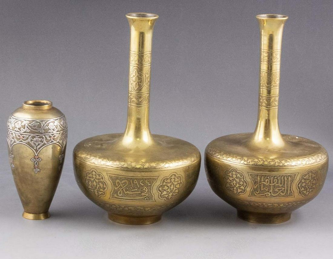 Carved Engraved Brass Vase & Vase with Enamel Background Lot of 2 Made in India5 days LeftFour Vinage Ceramic Brass Glass Pod VasesJul 24, 2025Pair of Vintage Antique Middle Eastern Brass VasesMar 22, 2026A PAIR OF DAMASCENE VASES. Probably Israel.Apr 21, 2026Pair of Decorative Vintage Antique Brass Bud VasesMar 22, 2026Elegant Pair of Bronze Bottle VasesMar 15, 2026PAIR BRONZE-GILT DRAGON BOTTLE VASESMar 22, 2026A pair of bronze vases with gold inlay.Mar 18, 20264 pcs Brass Graduated Urn Style Vases. Largest Measures 11" x 10" x 11" Very Good Condition.Pair of Chinese Antique Handmade Pure Copper Vases Inlaid with Gemstones – Dragon and Phoenix4 days LeftA pair of cloisonne enamel and gilt bronze vases19 hrs LeftA Chinese Bronze Vase and Brass PlaquesMar 15, 2026A Exquisite A pair of Gilt Bronze Lotus Pattern -With Inscription VaseApr 03, 2026A Exquisite A pair of Gilt Bronze Lotus Pattern -With Inscription VaseMar 24, 2026A BRONZE VASE AND A BRONZE EWER AND COVER Ming Dynasty (2)Pair of Late Qing Brass Vases with Phoenix and Peony MotifsMar 29, 2026