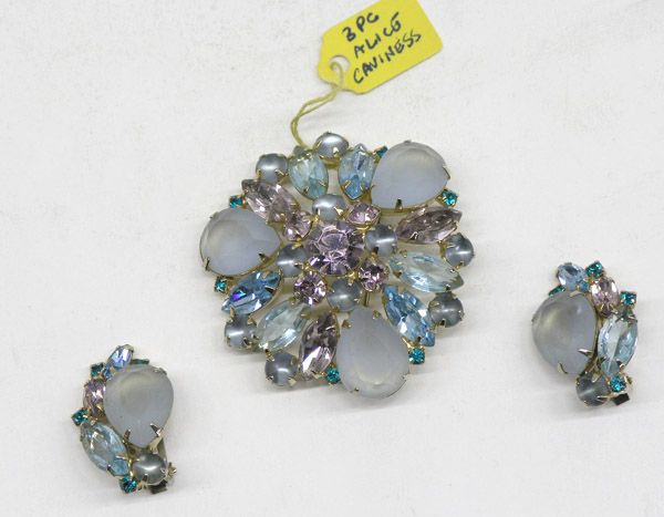 Vintage Brooches Signed "Alice Caviness" & "Christian Dior by Kramer," and a Set Hallmarked "Made inVintage Brooches Signed "Alice Caviness" & "Christian Dior by Kramer," and a Set Hallmarked "Made in Austria"Lovely vintage signed brooches include a large oval shaped brooch in gold-tone metal with a