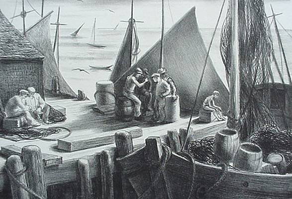 Alice Harold Murphy- ''Fish Stories'', lithograph,