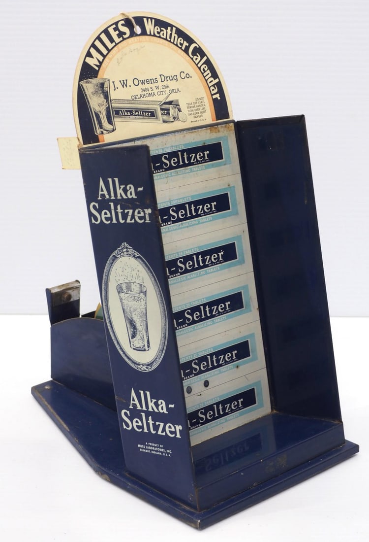 Alka Seltzer tin product display rack