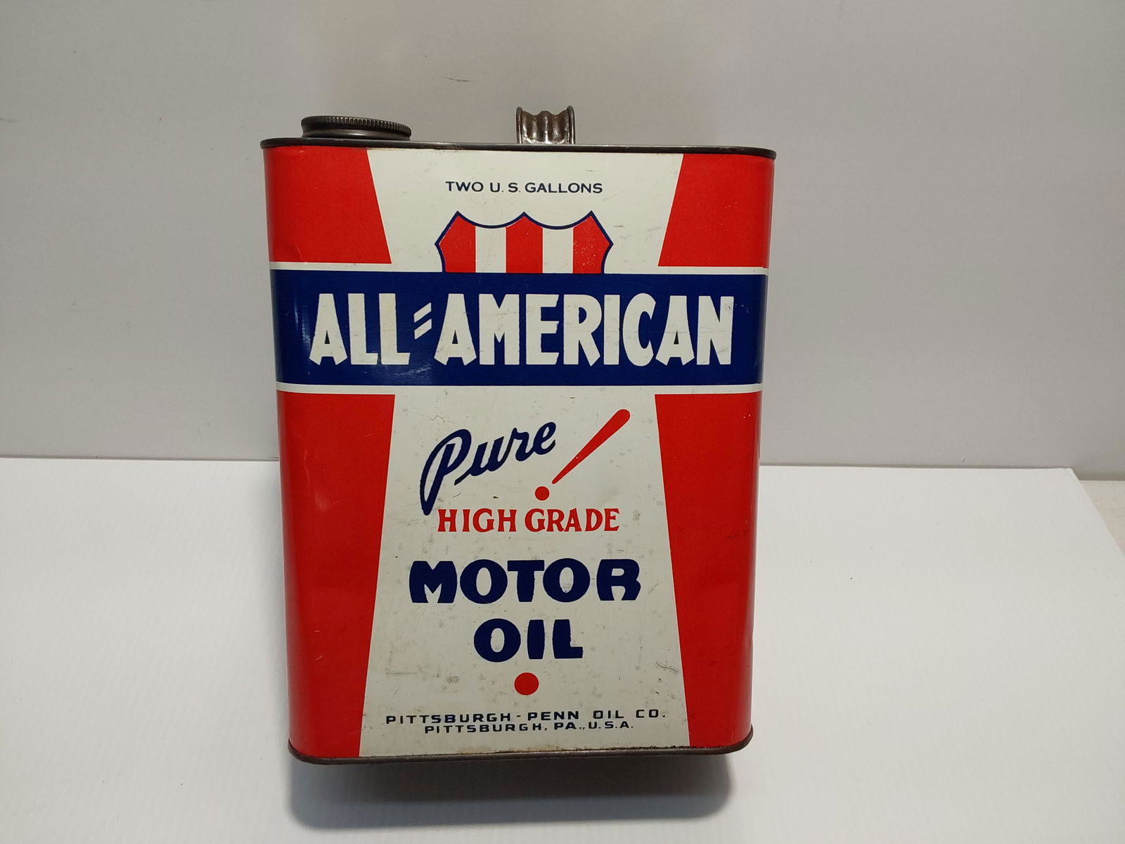 American Artex Two Gallon Oil CanMar 08, 2026Site Special Two Gallon Oil CanMar 08, 2026Certified Oil Company 2 Gal. Motor Oil CanMar 16, 2026Atlantic Capitol Two Gallon Oil CanMar 08, 2026Red Head Redoco Two Gallon Oil CanMar 08, 2026Rocket Two Gallon Oil CanMar 08, 2026Oil State Times Square Stores Two Gallon Oil CanMar 08, 2026Farm-Oyl Two Gallon Oil CanMar 08, 2026Radbill Penn-Rad Two Gallon Oil CanMar 08, 2026Penn-Rad Motor Oil 2 Gallon CanMar 21, 2026Modern Petroleum Corp. Modern Pennsylvania 1 Gal. Motor Oil CanMar 16, 2026Illinois Oil Products Special 2 Gal. Motor Oil CanMar 16, 2026Banner Two Gallon Oil CanMar 08, 2026Booster Two Gallon Oil CanMar 08, 2026B.F. Goodrich Co. Penrich Motor Oil 2 Gal CanMar 16, 2026Continental Oil Co. Demand Motor Oil 2 Gal. CanMar 16, 2026