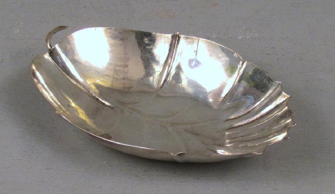 SoldAllan Adler modernist leaf-form serving dishAllan Adler (1916-2002) modernist leaf-form serving dish raised on ball feet Los Angeles, California sterling silver stamped marks 6 9/16"w x 5 3/4"d x 2 3/4"hSee Sold Price