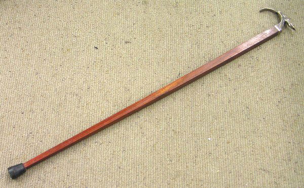 SoldWalking Cane With Sterling Silver TopDESCRIPTION: Sterling silver topped walking cane with wood shaft. Marked "Sterling" CIRCA: 20th Century ORIGIN:Â DIMENSIONS: L. 36" CONDITION: Great condition. See lot description for details on iSee Sold Price