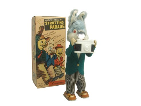 SoldAlps Reading Bunny Windup ToyMade by Alps marked "Made in Japan". 7 1/4" T. The toy works. Made of Tin / Faux Fur / Cloth. Excellent Condition in Original Box.See Sold Price