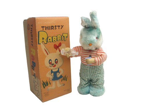SoldCollection of Assorted Vintage Mechanical ToysCollection includes Alps Thirsty Rabbit wind up mechanical toy with original box (winds & works), Tin wind up Skipping Bear toy (over wound) with original box, 1950s Polar Bears wind up mechanical toySee Sold Price