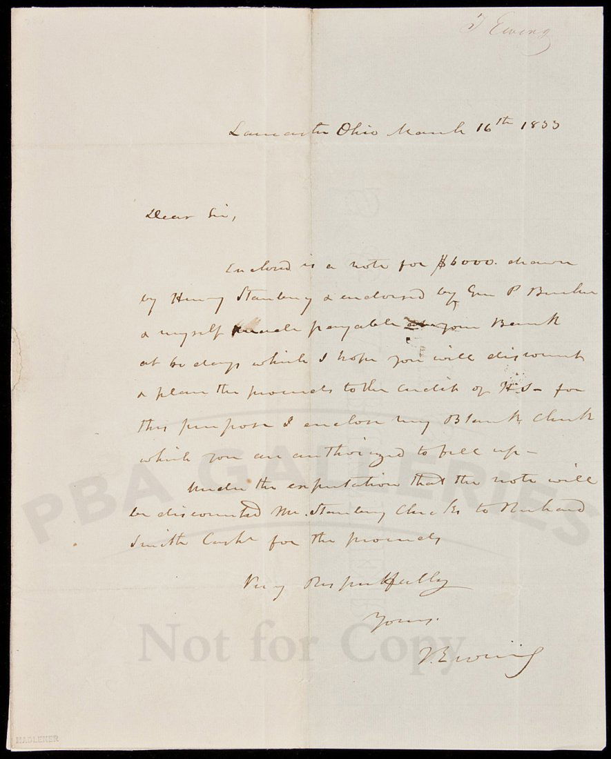ALs from Thos Ewing to Nicholas Biddle 1855