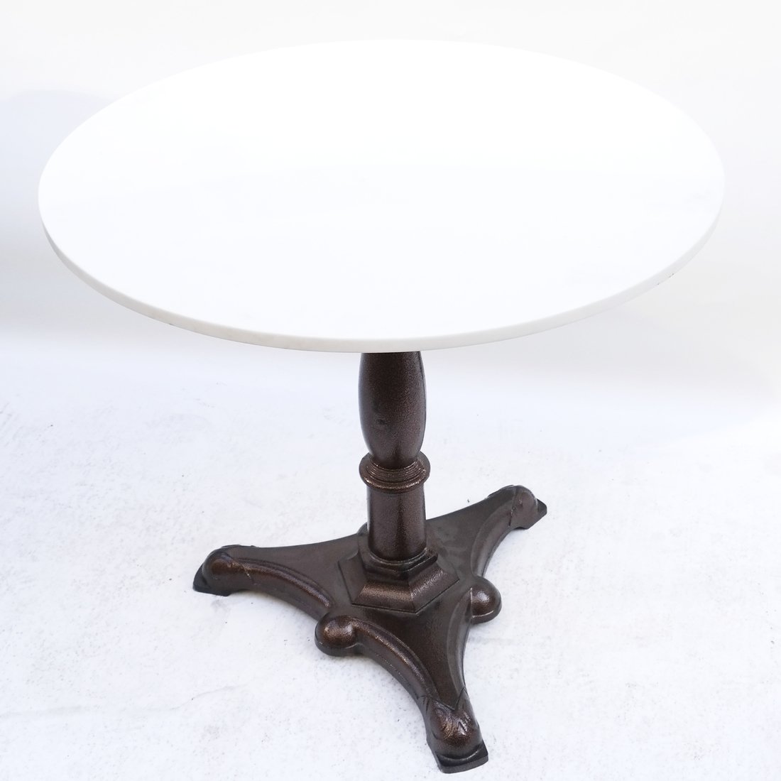 SoldIndustrial Marble Top Bistro Table Cast Iron Base,DecoIndustrial Marble Top Bistro Table w/Cast Iron Legs. This is an industrial, cast iron bistro table with a white marble top. Has an interesting S-shape design on the feet. Would make a great kitchen taSee Sold Price