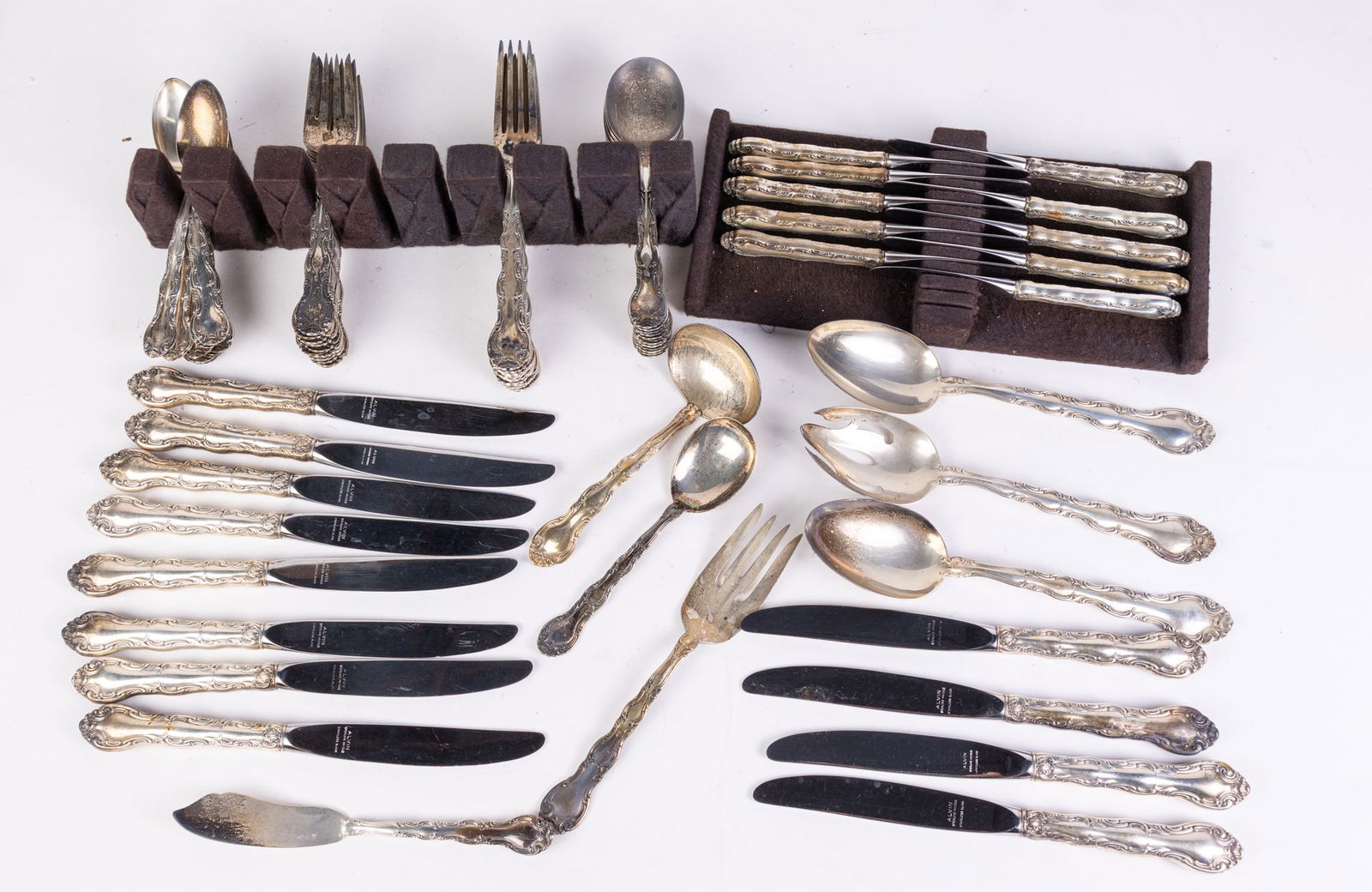 Alvin Sterling French Scroll Sterling Silver Flatware Set