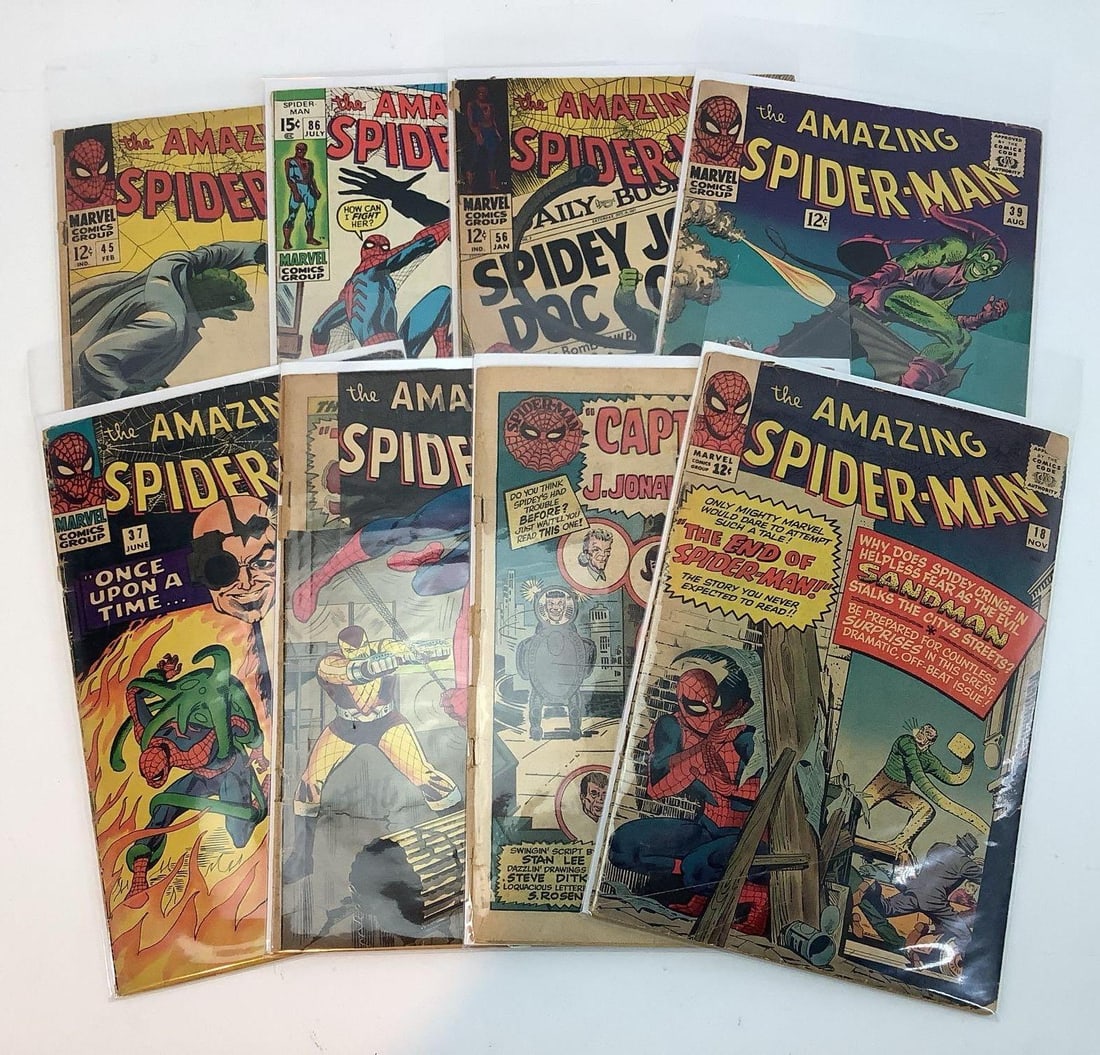 Sold[SPIDERMAN]. Sixteen of The Amazing Spider-Man Comics. Silv...[SPIDERMAN]. Sixteen Amazing Spider-Man Comics. Silver Age. Marvel Comics Group, ca. 1966-67. A group of sixteen Amazing Spider comics including No. 39 “How Green Was My Goblin?”; No. 40;See Sold Price