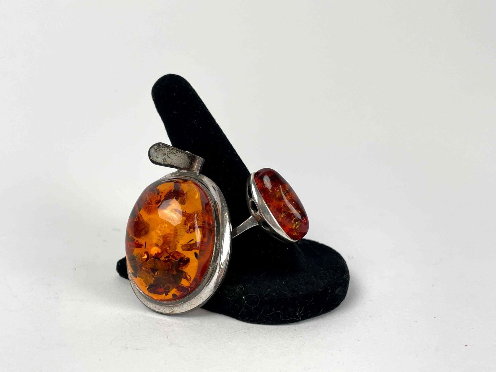 Amber and Sterling Silver Pendant and Ring