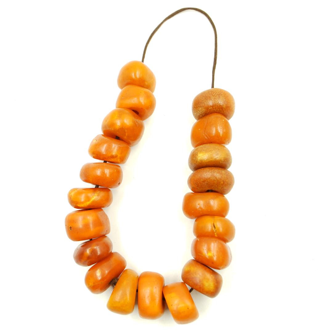 SoldAntique Natural Butterscotch Egg Yolk Amber NecklaceAntique Natural Butterscotch Egg Yolk Amber Necklace..........length is 84 centimeters; The biggest bead measures 31 millimeters, the smallest - 11 millimeters diameter.The weight is 172.8 grams.See Sold Price