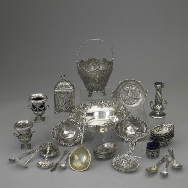 HUGE LOT ANTIQUE & VINTAGE SILVER PLATED TABLEWAREMar 07, 202620PC LOT OF STERLING SILVER ITEMS, 44.3 T.O.W.Mar 07, 2026Lot of Weighted Sterling Silver ItemsMar 07, 2026Meriden, Imperial Silver & Others Assorted 9pc LOTFeb 26, 2026(Lot of 8) Assorted Sterling Silver Table Articles5 days LeftMIXED SILVER LOT STERLING 900 AND SPANISH SILVER 8354 days LeftSilverplate Flatware, Tableware and AccessoriesFeb 26, 2026Judaica ItemsFeb 25, 2026ASSORTED ESTATE SILVER PLATED UTENSILS & TABLEWAREMar 07, 2026Silver Items, Various OriginsFeb 25, 2026Silver Items, Various OriginsFeb 25, 2026Silver Items, GermanyFeb 25, 2026Sterling silver hollowware and flatware, 13pc, 15.595 ozt. weighable. 7"H x 2 1/4"Diam. (vase4 days LeftSELECTION OF SILVER PLATE ITEMS, INCL. TEA AND CASTER SETS.2 days LeftCharming Collection Sterling Silver Table WaresFeb 28, 2026(15) MISCELLANEOUS SILVERPLATE6 days Left