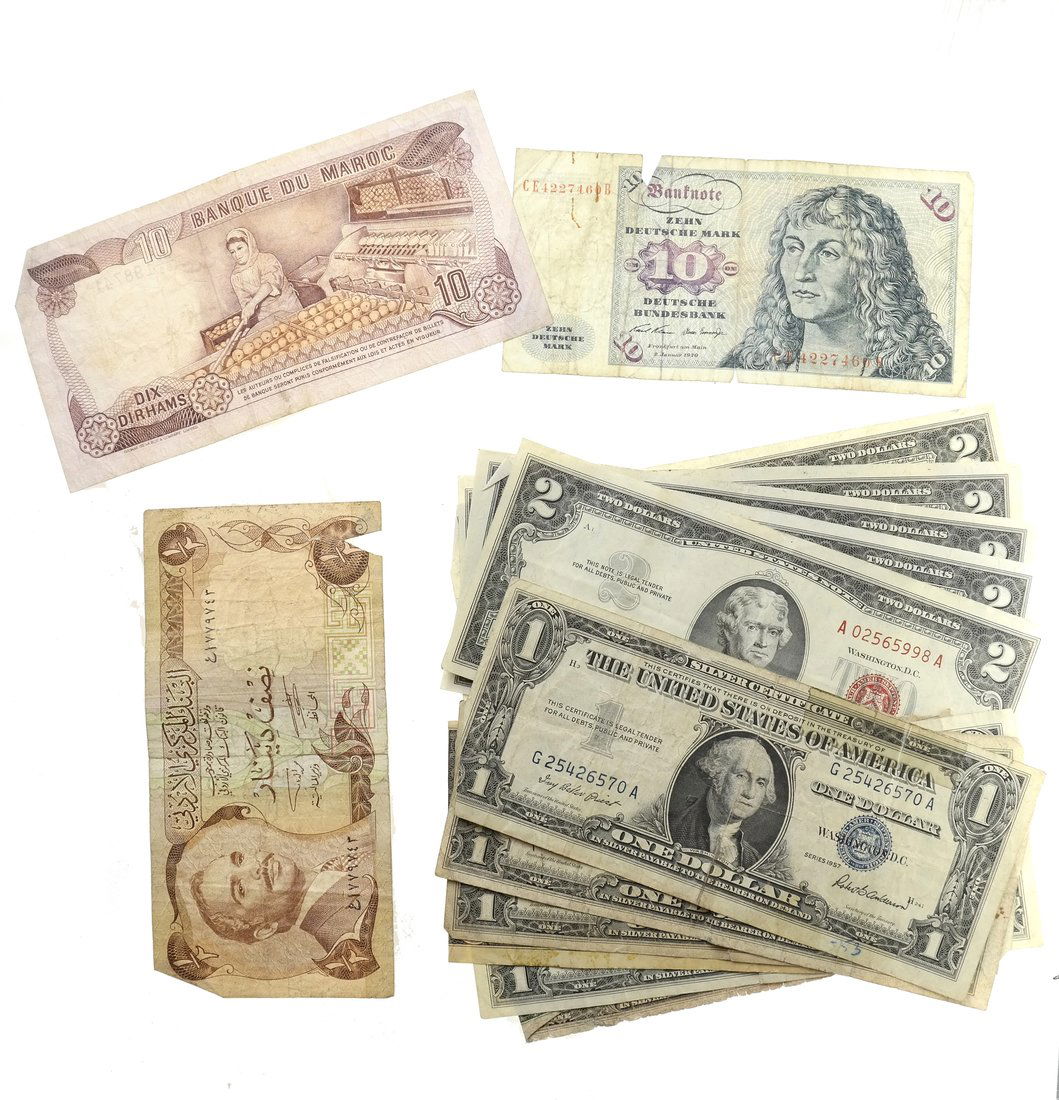LARGE LOT OF FOREIGN COINS AND CURRENCYFeb 08, 2026Lot of U.S. $2 Two Dollar Bills Banknotes Circulated and UncirculatedFeb 19, 2026Lot of (10) Mixed Company Vintage Stock Certs2 days LeftSilver Certificate Five And One Dollar Bills8 hrs LeftAmerican Currency, One, Two, and Five-Dollar BillsFeb 08, 20261923 Large Silver Certificate Bills And Others8 hrs Left[CIVIL WAR – CURRENCY]. Group of 8 Confederate bills. Inclu...Feb 05, 2026Six Authenticated and Graded U.S. Currency NotesFeb 08, 2026International CurrenciesA GROUP OF AMERICAN BANKNOTES. Including a 1928 - G Red Seal , a 1953-A $5 Red Seal, a 1957 $1 silve5 days LeftChinese Paper Money GroupFeb 08, 2026A GROUP OF AMERICAN BANKNOTES. Uncirculated. Including a 2006 $5, 2004A $10, (2) 2006 $5, 1999 $5,5 days LeftChinese Paper Money GroupFeb 08, 2026Group of (11)Blue Seal Silver Certificate One Dollar BillFeb 14, 2026Group of 10 US Mint $2 BillsFeb 14, 2026Ten Twenty Dollar Bills