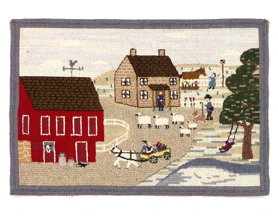 AMERICAN FOLK ART PICTORIAL HOOKED RUG