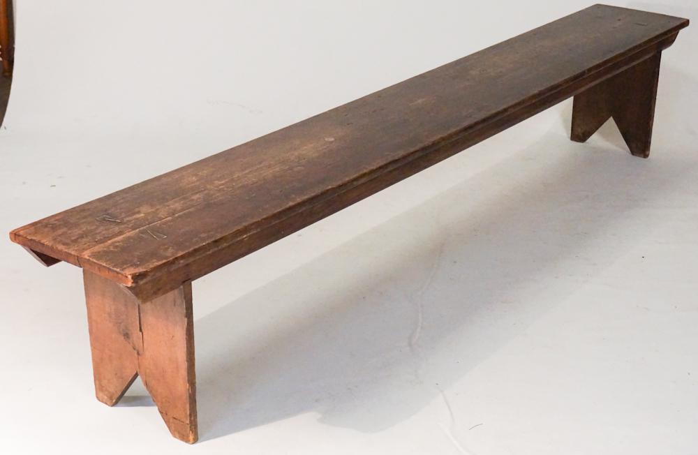 NEW ENGLAND REDDISH-BROWN PAINTED PINE HIGH STYLE COUNTRY BENCH.Mar 19, 2026AMERICAN PAINTED PINE PEW WITH UNUSUAL SHAPE.Mar 19, 2026AMERICAN GRAIN-PAINTED PINE HANGING SHELF.Mar 19, 2026Antique Rustic Farmhouse Bench with Aged Finish 39.5"6 days LeftAMERICAN OAK SPLAY-LEG TABLE.Mar 19, 2026A Gustavian-style pine console or serving table, c.1850, Swedish,7 days LeftOHIO HEPPLEWHITE CHERRY FARM TABLE.Mar 19, 2026Federal Paint-Decorated Pine Settee3 days LeftEarly Twentieth Century American Long Bench4 days Left10-Foot Brutalist Monastic Bench, 1850sMar 21, 2026