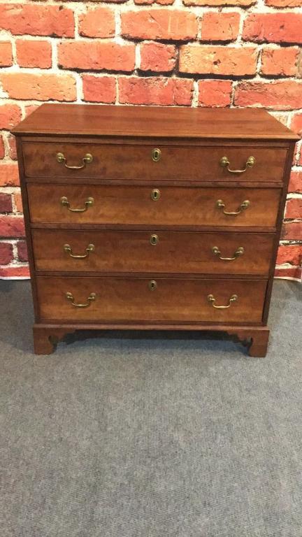 SoldChippendale ChestAn 18th Century American Chippendale Chest. Cherry four drawer chest with thumb molded drawer, embellished brass oval mounts with bail handles, and ogee bracket feet. Older refinishing, the hardware iSee Sold Price