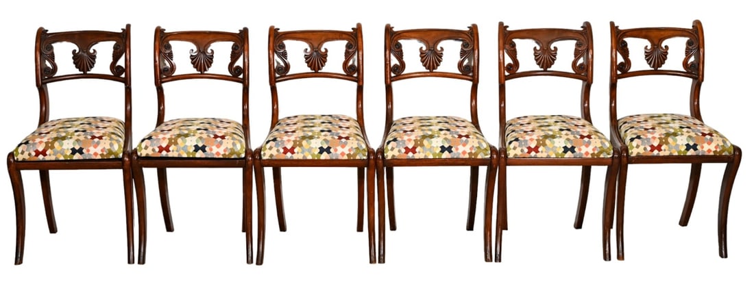 Eight Regency Style Mahogany Dining Chairs Model 106 With Brass Accents Set of 8Mynt Auctions4.4(852)$1002 days Left