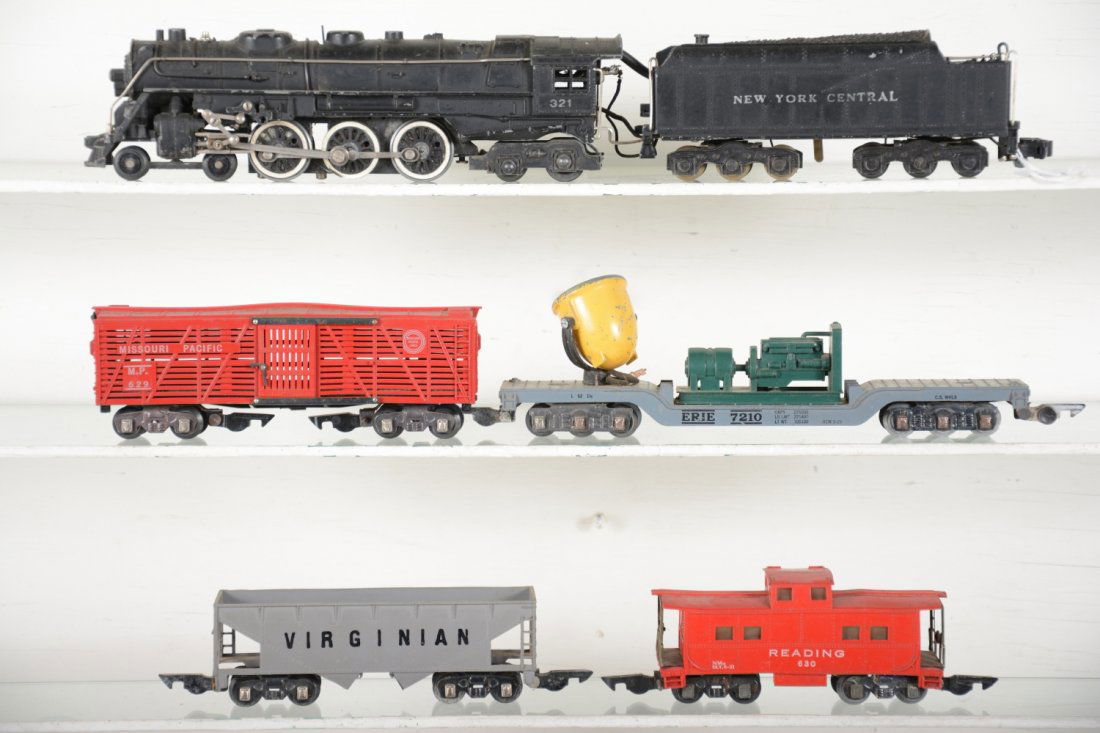 TOY STEAM LOCOMOTIVE AND PASSENGER CAR AND TWO TOLE-PAINTED SPICE CONTAINERS. Largest, 8.25"h. 24"l.Amelia Jeffers, Auctioneers & Appraisers4.6(180)$1003 days Left